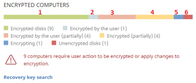 This widget shows the computers that support Cytomic Encryption and their encryption status.