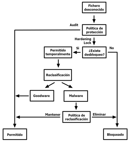 After the administrator unblocks an unknown item previously blocked by Advanced EDR, the classification process will, after some time, catalog the item as malware or goodware. If it is goodware, there are no additional considerations to be made, as Advanced EDR will continue to allow the item to run. However, if it is malware, the reclassification policy is applied, which enables the administrator to define the behavior of Advanced EDR. See Reclassification policy for more information.