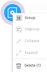 El espacio vacío de una agrupación expandida, representa al conjunto de nodos agrupados. Por ejemplo, para mostrar el menú de contexto de todos los nodos de una agrupación haz clic con el botón derecho del ratón en un espacio vacío de la agrupación expandida. De la misma forma, si seleccionas la opción Eliminar, borrarás todos los nodos que pertenecen a la agrupación.