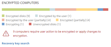 This widget shows the computers that support Cytomic Encryption and their encryption status.