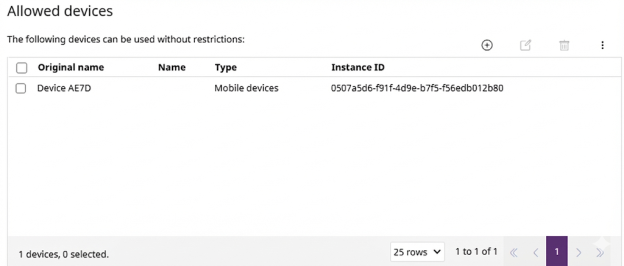 Haz clic en Aceptar. El nombre del dispositivo se actualizará en el listado de dispositivos permitidos.