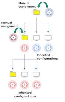 When the solution encounters manually assigned settings, that group and all of its subgroups, computers, and devices receive the manually assigned settings and not the original inherited ones.