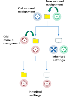 When you manually assign a new settings profile to a group, all computers and devices below that group use the manually assigned settings, not the inherited or default ones.