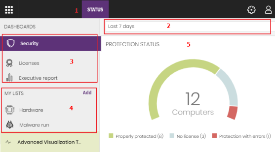 Licencias: estado de las licencias de Advanced EPDR asignadas a los equipos de la red. Consulta Licencias para obtener más información acerca de la gestión de licencias.