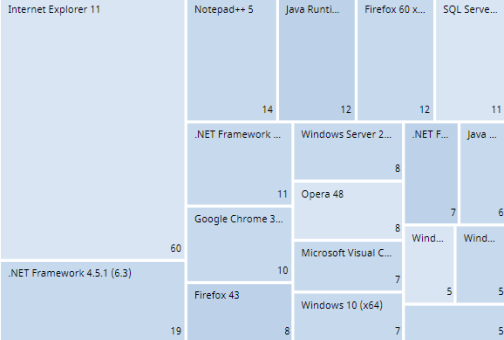 Lists the programs that are missing most patches, as well as the number of patches the program is missing