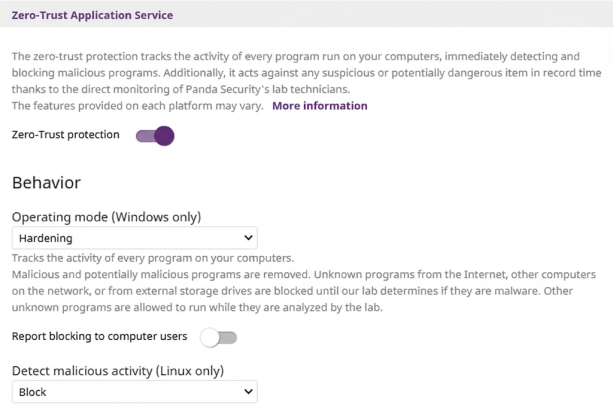 Hardening: ejecuta los programas desconocidos ya instalados en el equipo del usuario. Bloquea los programas desconocidos que vienen de fuentes no fiables como Internet, otros equipos de la red o unidades de almacenamiento externas hasta su clasificación. Los programas clasificados como malware serán desinfectados o eliminados.