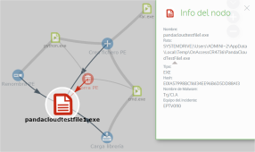 Advanced EPDR visualiza en un grafo el período de 15 días con la telemetría asociada a cada detección realizada por Zero-Trust Application Service. En este grafo se muestra de forma gráfica las acciones de los programas que envueltos en el ataque.